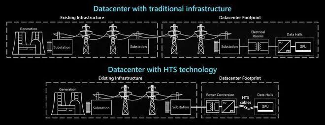 在实际测试中,HTS已证明能将向服务器机架供电的电缆尺寸缩小一个数量级。这意味着数据中心可以在现有的空间限制内,支持更高密度的AI算力部署,而无需像过去那样被迫扩展变电站或增加馈线。