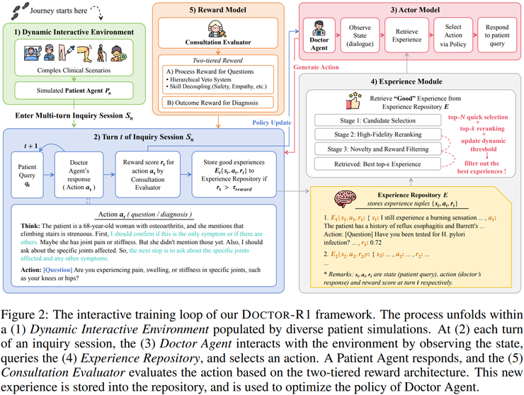 这项研究不再将模型能力简单等同于知识覆盖度或参数规模,而是将临床问诊本身视为一个长期、多轮、部分可观测且高度风险敏感的决策过程,重点探索如何让模型学会在信息不完整的条件下提出高价值问题、动态调整询问策略,并在整个过程中保持安全意识与沟通质量。为医疗智能体从工具型问答系统迈向具备临床推理与交互能力的决策主体提供了新的研究范式。