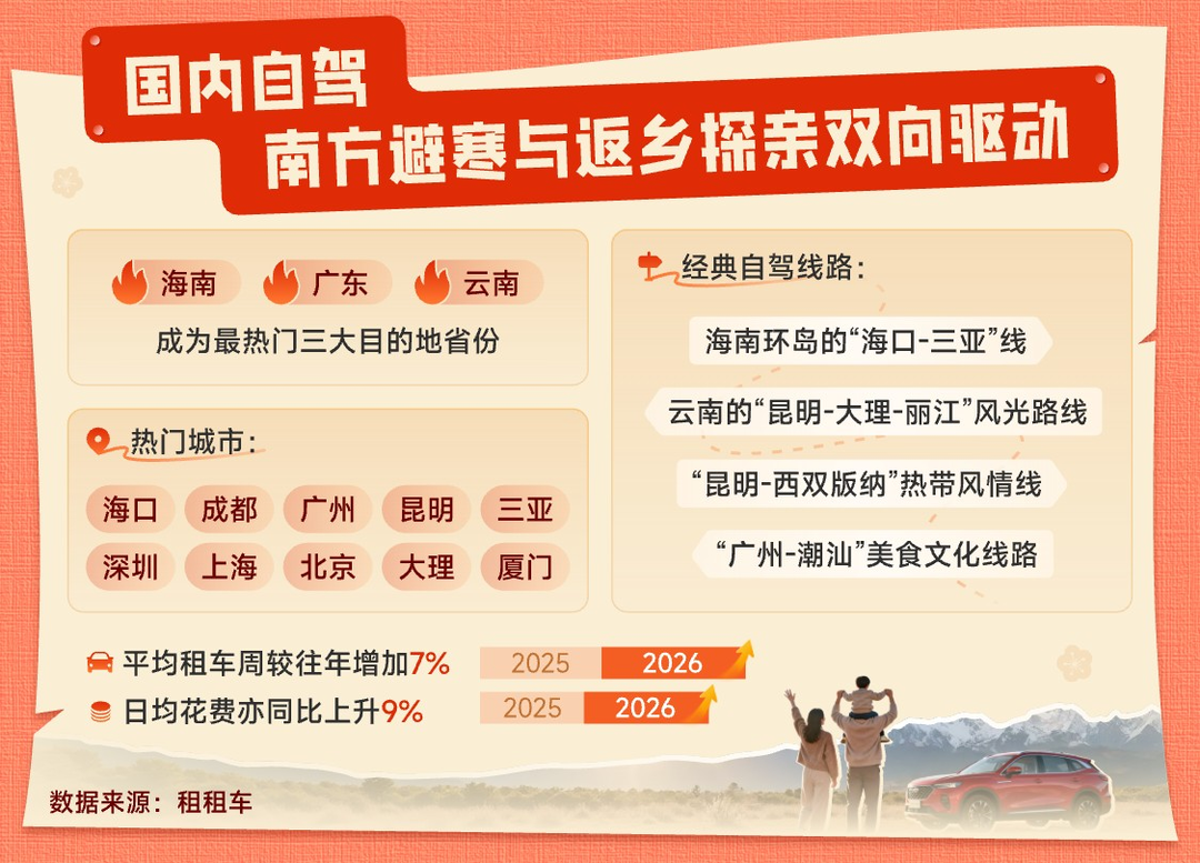 国内自驾:南方避寒与返乡探亲双向驱动