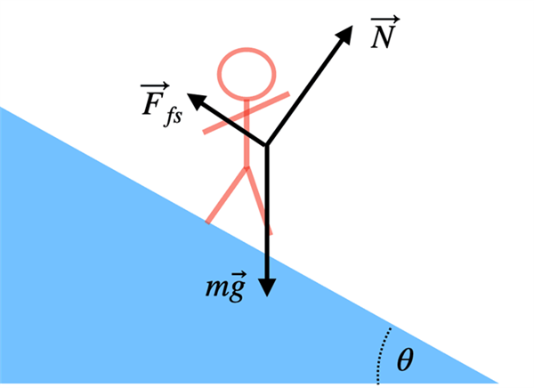 如果在坡上行走,法向力仍然沿着与接触面垂直的方向作用,但不再与重力相反。