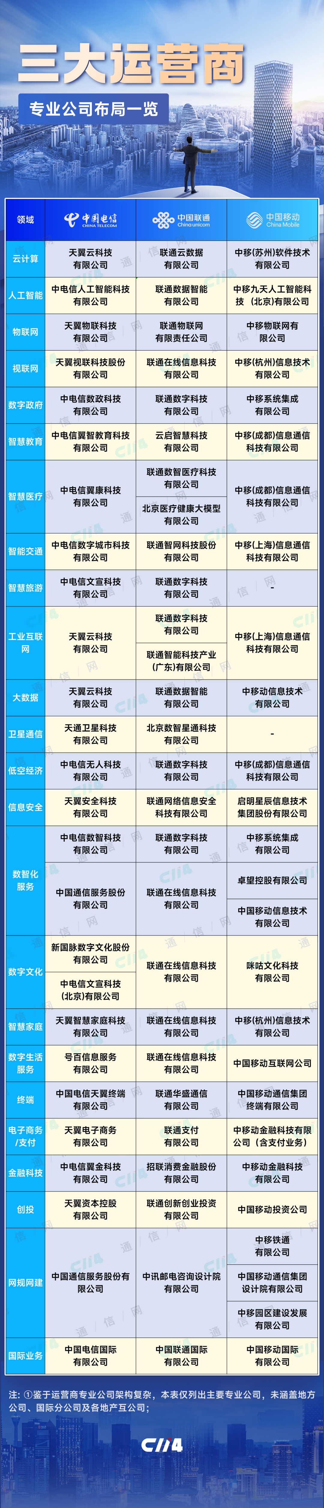 一图看懂三大运营商专业公司布局