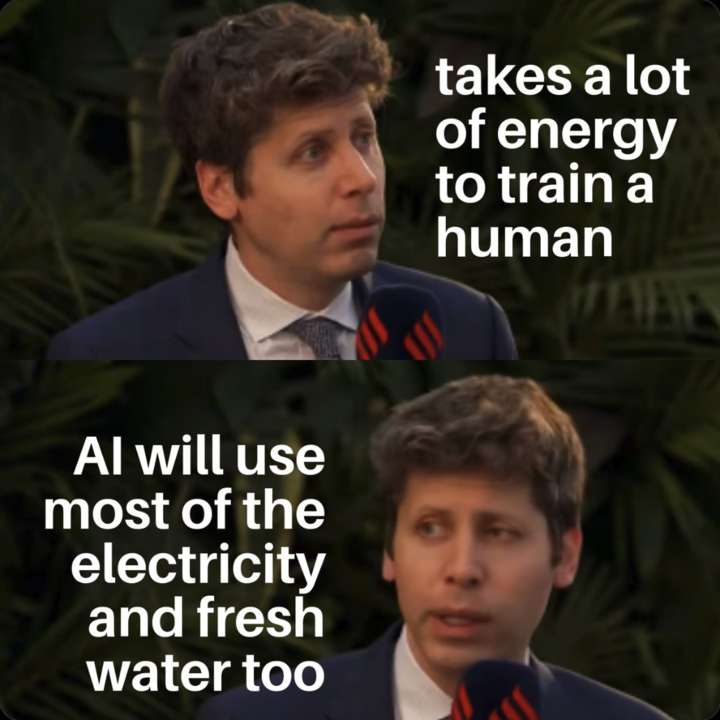 这话听起来只是个比喻,但一传开,就被解读成 AI vs 人类的「效能大战」。Altman 到底想表达什么?简单说,他觉得大家批评 AI 时,总拿「训练模型」的总能耗和人类「回答一个问题」的瞬间能耗比,这不公平。