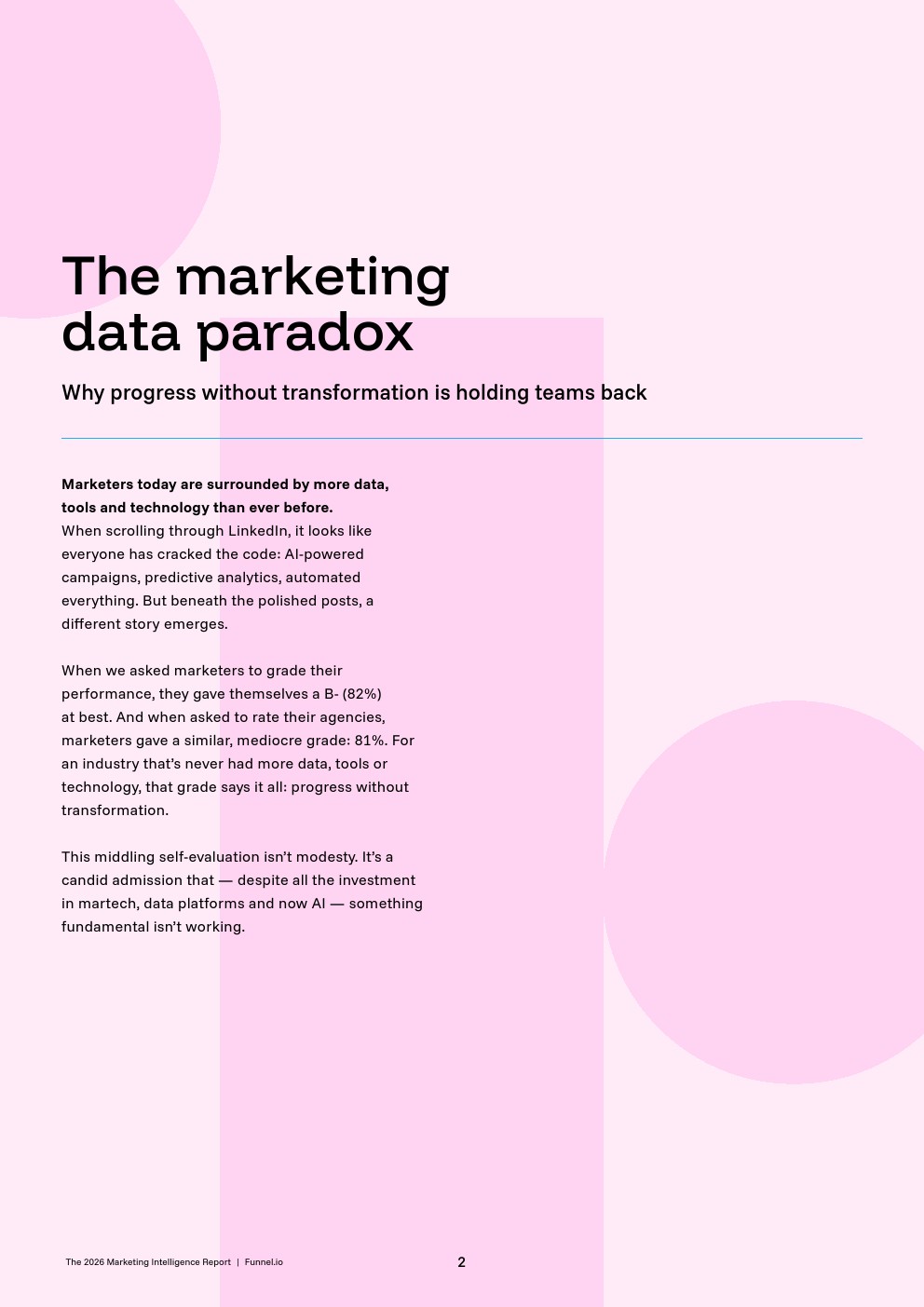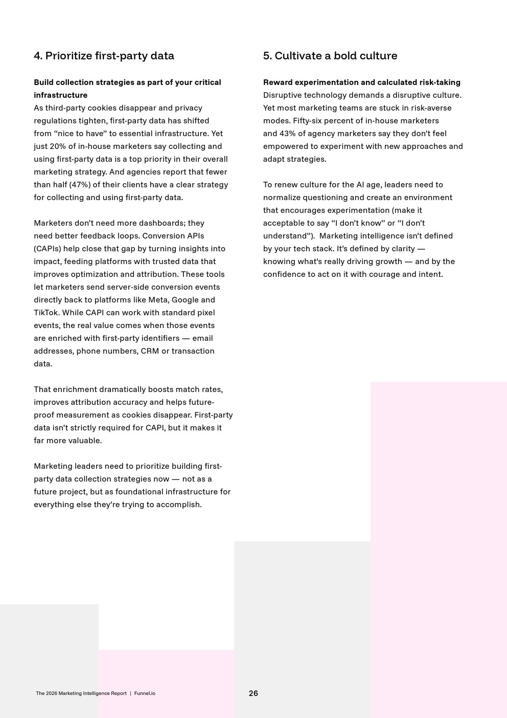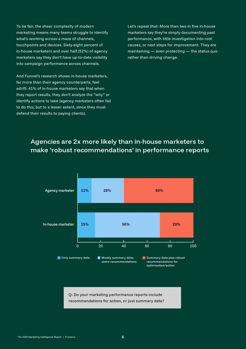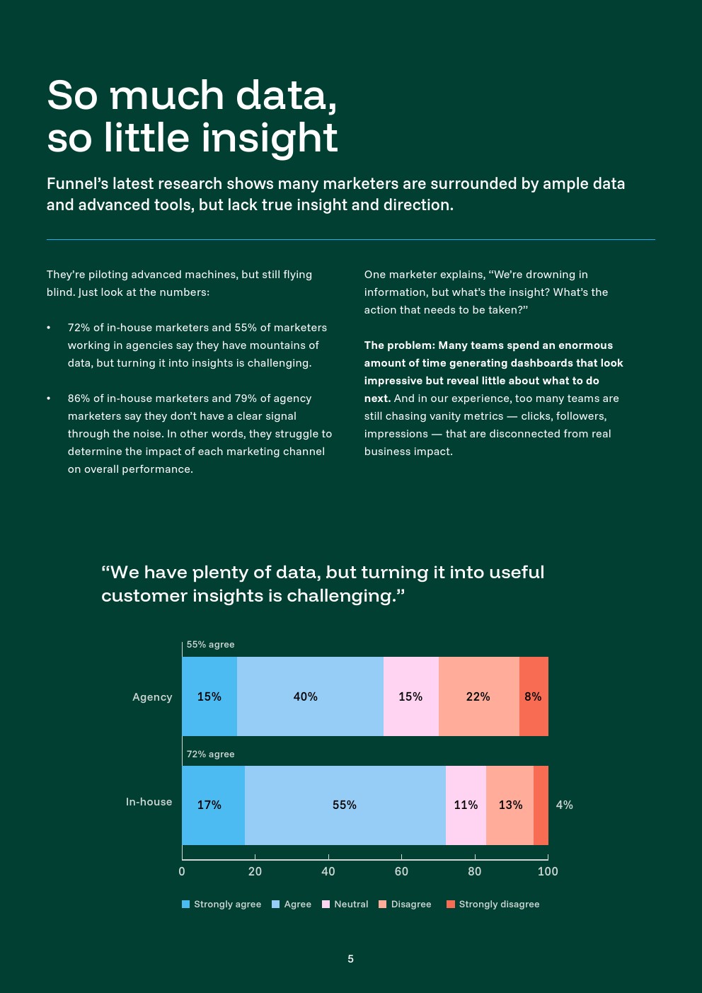 从数据到洞察这一长期存在的问题继续困扰着营销人员:72%的内部营销人员以及55%的代理机构营销人员同意,他们拥有大量数据,但将其转化为有用的客户洞察具有挑战性。