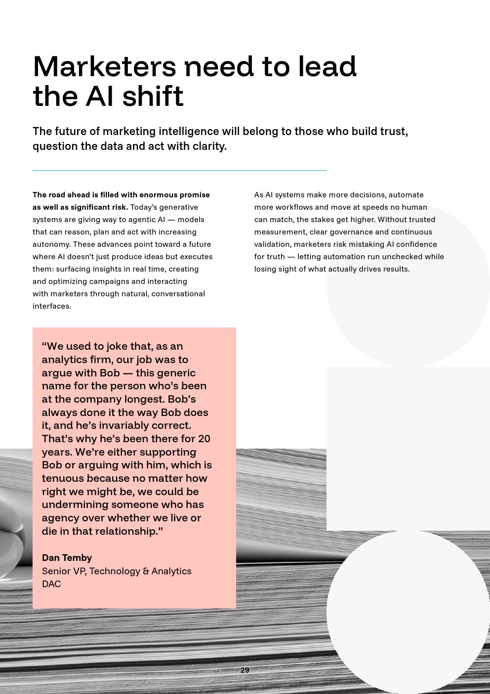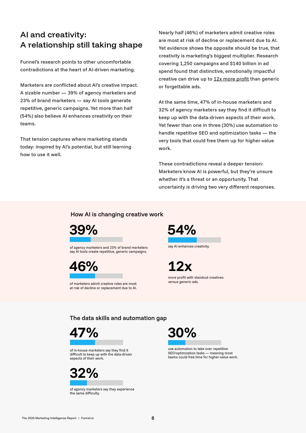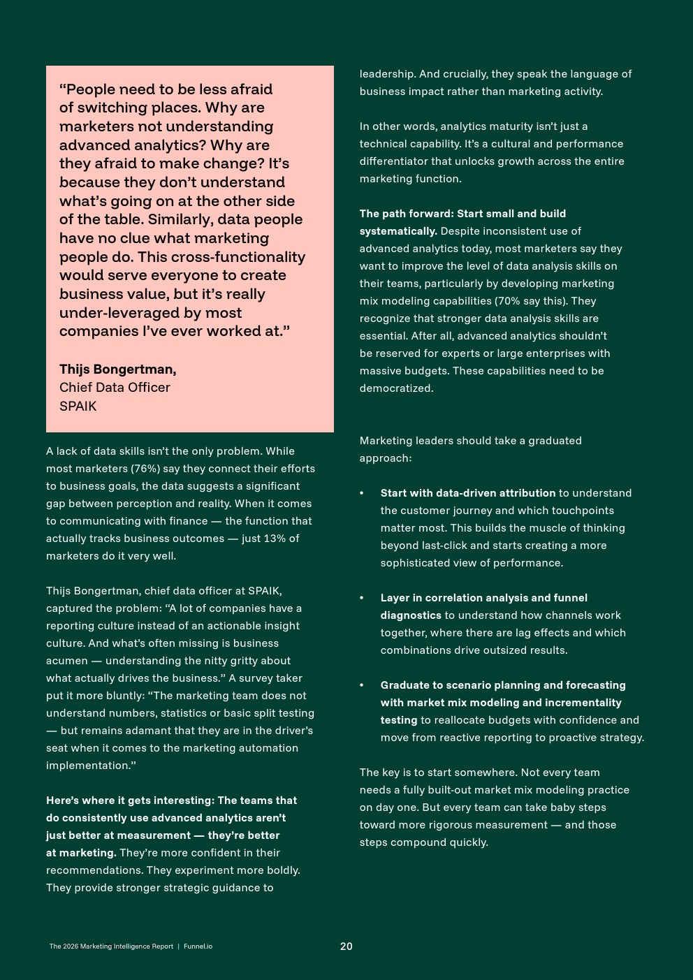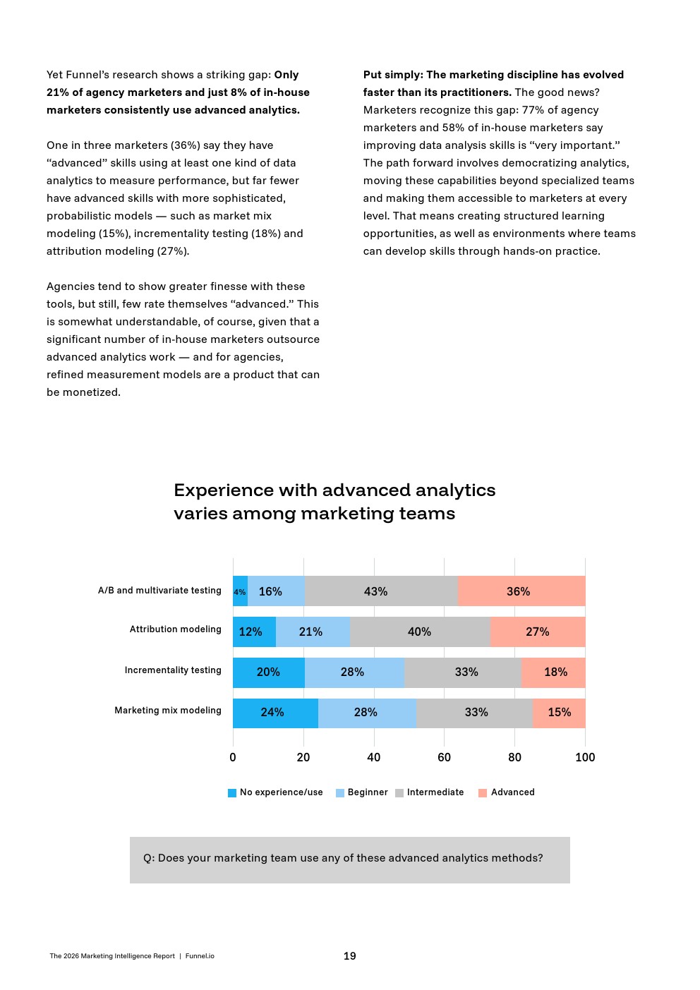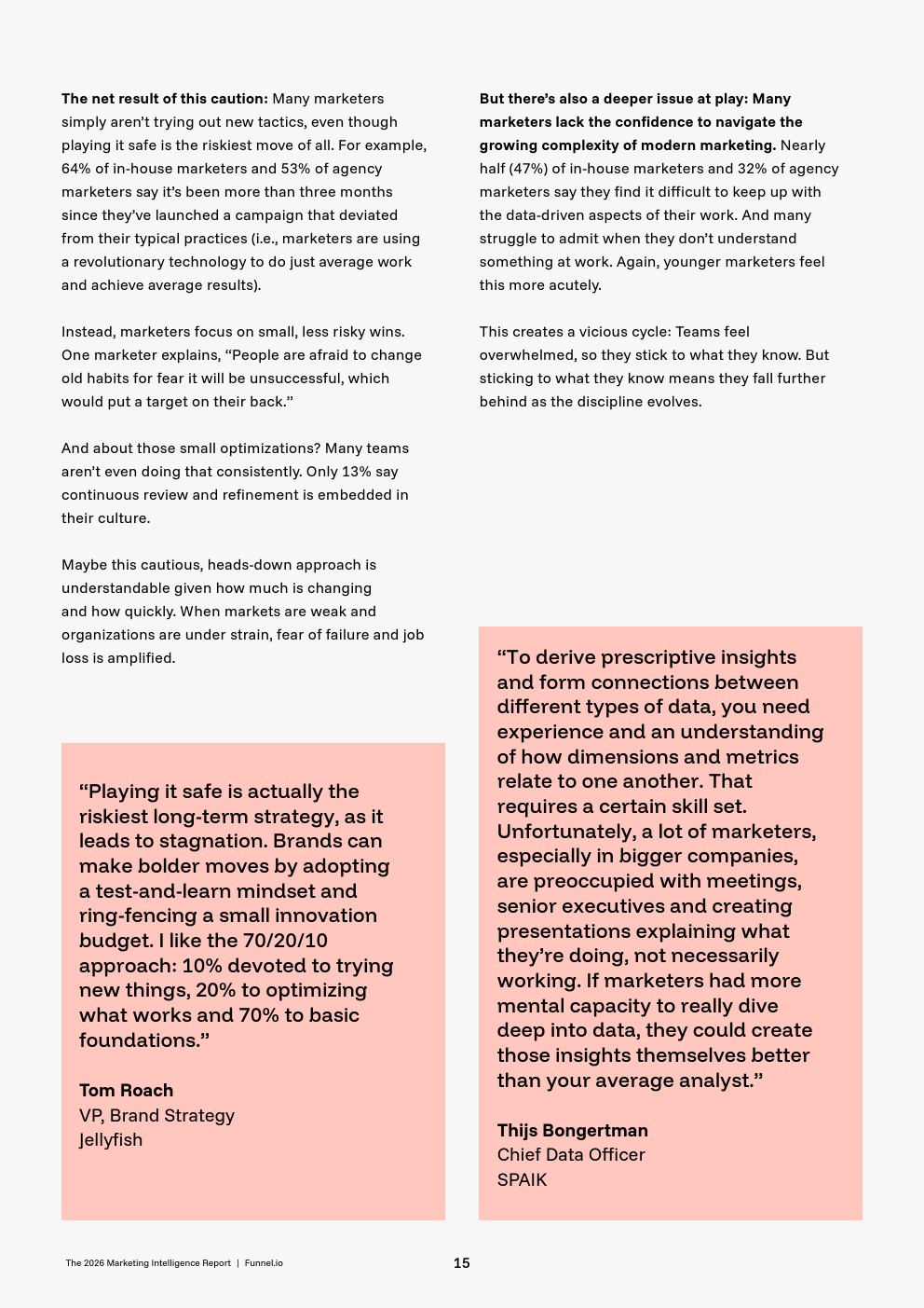 他们确实面临着艰巨的任务:47%的内部营销人员和32%的代理机构受访者同意,他们发现很难跟上现代营销的数据驱动方面。