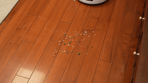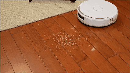 在识别到大面积固体颗粒物时,会减速并增加吸力,着重清理。