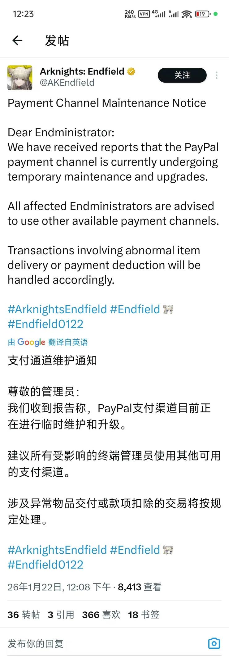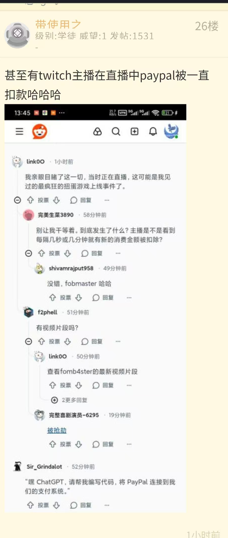 其中一个比较“地狱”的案例是,有twitch主播的账号绑定Twitch之后,如果有随机路人充值终末地,每隔几秒就会有Paypal提醒,他的账户在被人扣款。