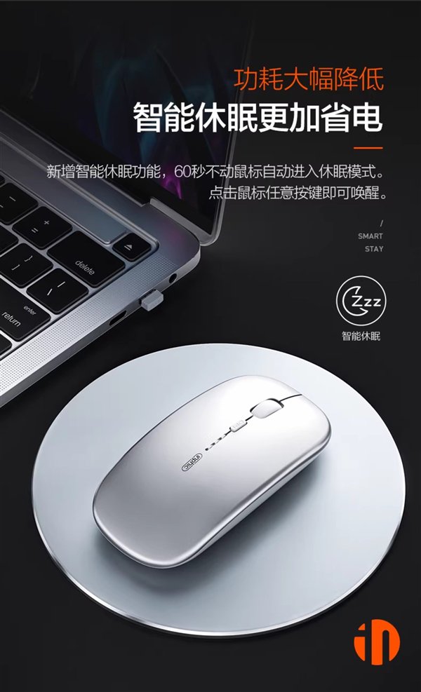 新增智能休眠功能,60秒不动鼠标自动进入休眠模式。点击鼠标任意按键即可唤醒。
