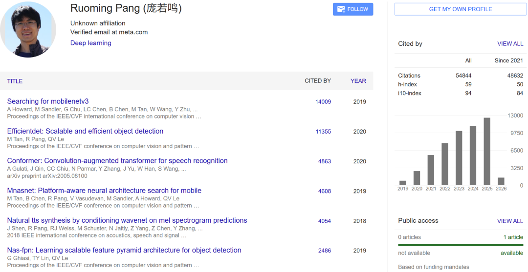 庞若鸣的职业生涯跨越了多家科技巨头,他本科毕业于上海交通大学。他在谷歌工作了 15 年,先后加入了苹果与 Meta: