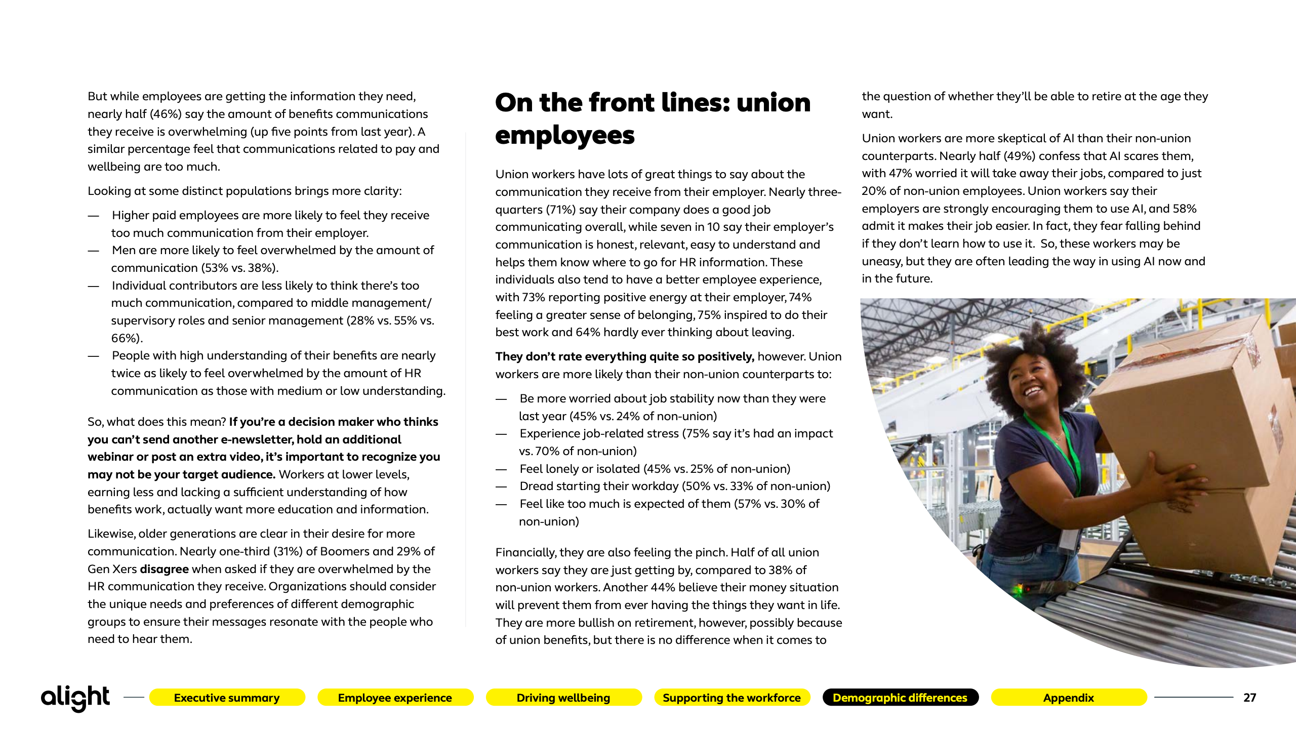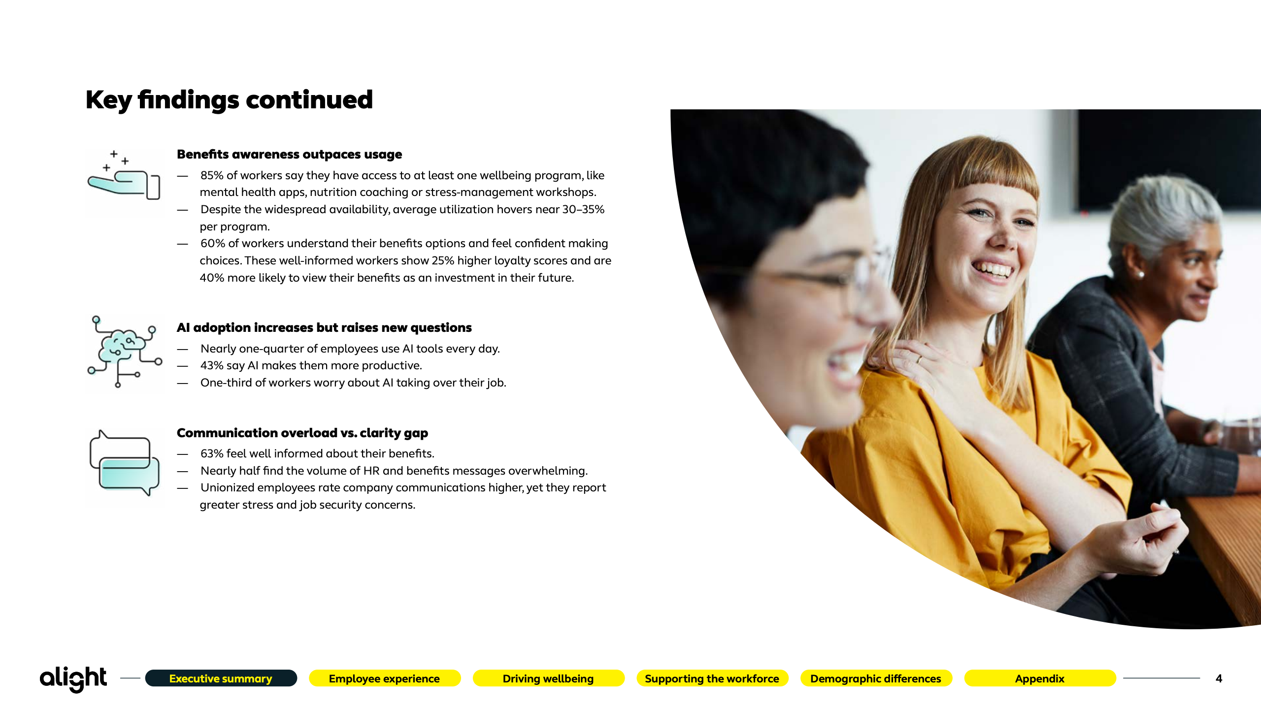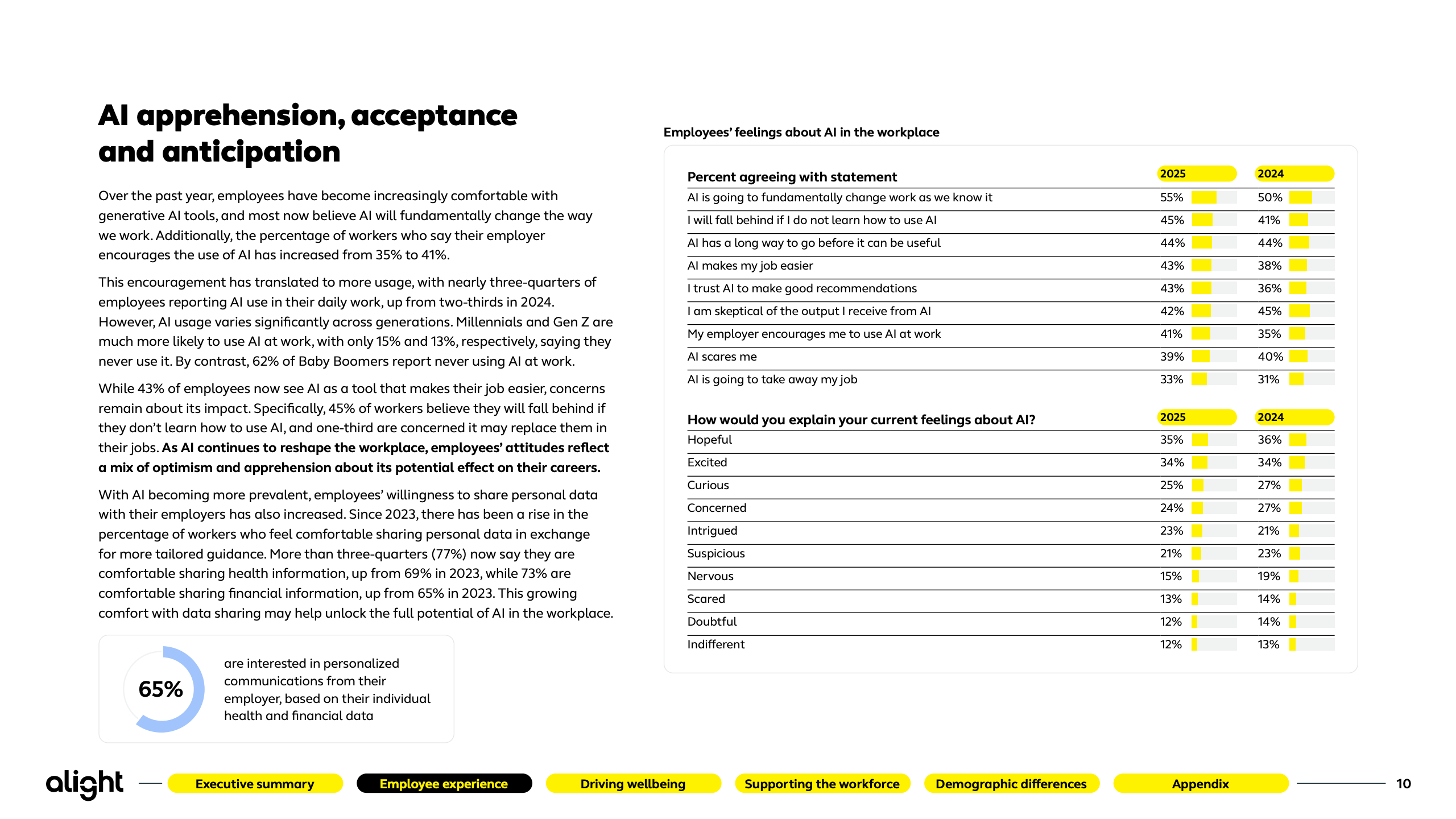 本报告基于Alight对2500名美国员工的系统性调研,覆盖不同年龄、行业与用工形态,刻画出2025年美国劳动力在体验、福祉与技术冲击下的真实心态轮廓。研究显示,员工整体情绪正在修复,但结构性矛盾依然突出。