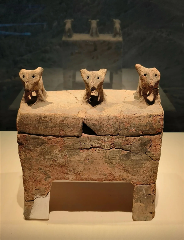 据悉,三狗钮盖陶方鼎距今约3900-3600年(相当于夏朝时期),于1976年在甘肃玉门火烧沟墓葬遗址出土,现藏于甘肃博物馆。