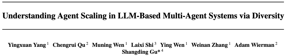 论文标题:Understanding Agent Scaling in LLM-Based Multi-Agent Systems via Diversity