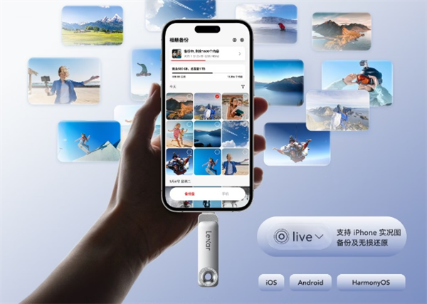 用户还可搭配Lexar专属备份App,实现相册照片、iPhone实况图及视频的自动备份,轻松解决设备存储不足的问题。