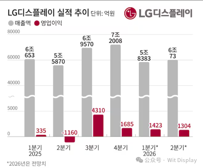 去年成功扭亏为盈的lg Display预计将在今年上半年再次实现盈利。尽管受存储器危机的影响,下游市场需求放缓,且今年电视市场萎缩,但LG Display仍致力于通过调整业务结构,专注于OLED,以期继续提升盈利能力。