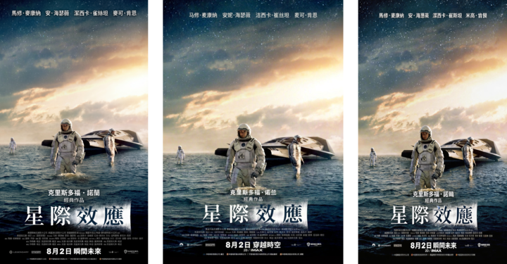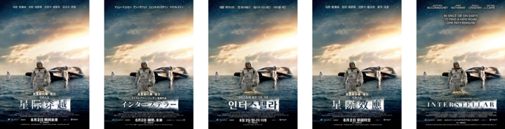 这里我们选择了韩语、日语、繁体中文和英语四个市场,让我惊喜地除了它对字体的保持,还有翻译。因为《星际穿越》在台湾上映使用的译名,就叫做《星际效应》,Nano Banana 2 没有粗暴的把星际穿越转译成「星際穿越」。