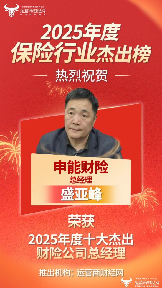 经过对行业的观察,运营商财经网独家打造的“2025年度十大杰出财险公司总经理榜”正式发布!本次榜单评选公开公正,在多方考量后,申能财险现任总经理盛亚峰提名入围!