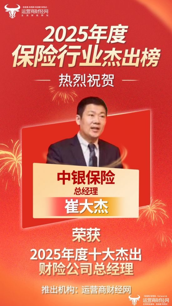 经过对行业的梳理,运营商财经网独家打造的“2025年度十大杰出财险公司总经理榜”正式发布!本次榜单评选公开公正,没有严格的先后顺序之分。在多方考量后,中银保险现任总经理崔大杰榜上有名!