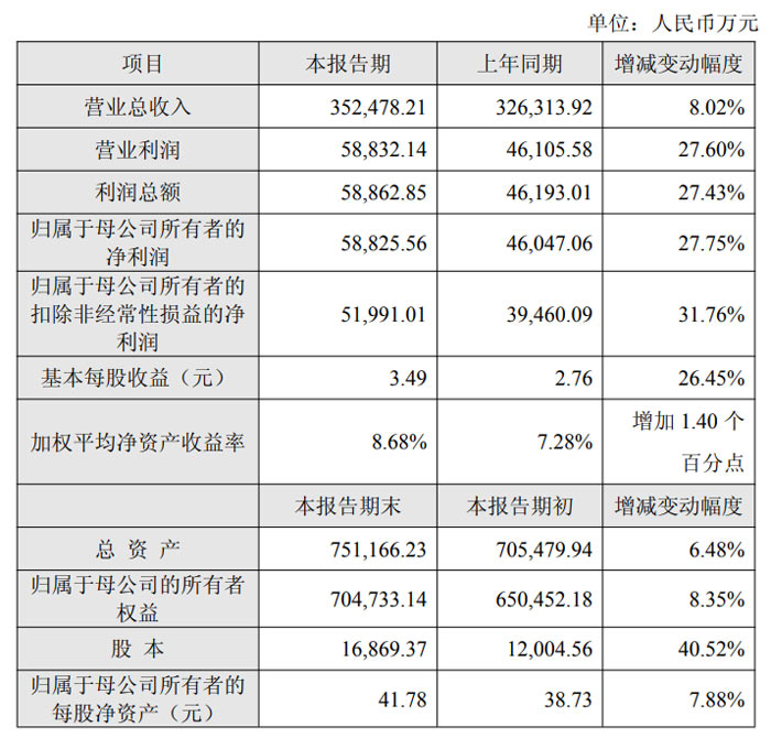 盈利指标上,公司 2025 年基本每股收益为 3.49 元,较上年同期 2.76 元增长 26.45%;加权平均净资产收益率达 8.68%,较上年同期的 7.28% 提升 1.40 个百分点,股东回报能力进一步增强。