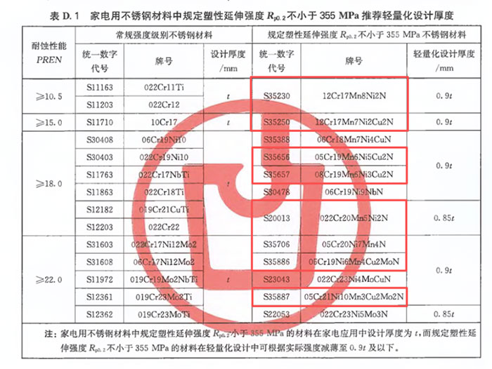 该标准既纳入了304和316L等常规不锈钢牌号,也在国际上首次纳入了高强度不锈钢系列产品牌号,为中国家电行业不锈钢用材及结构厚度设计等打下了科学基础,也为不锈钢家电行业绿色低碳发展作出了贡献。