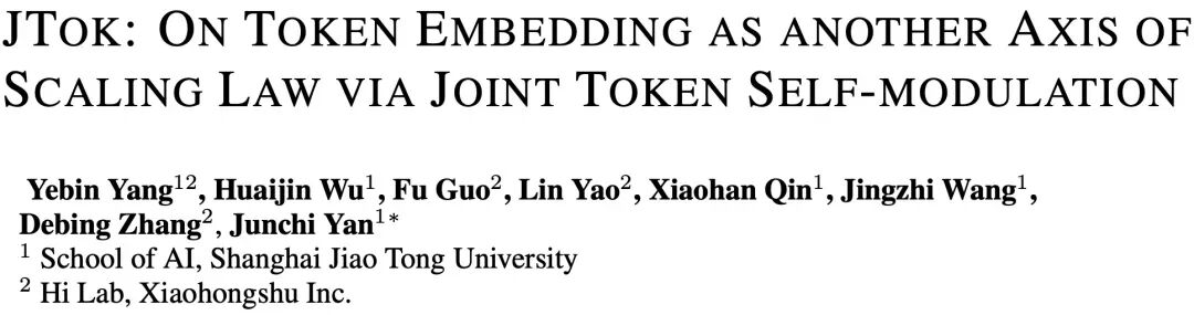 论文标题:JTok: On Token Embedding as another Axis of Scaling Law via Joint Token Self-modulation