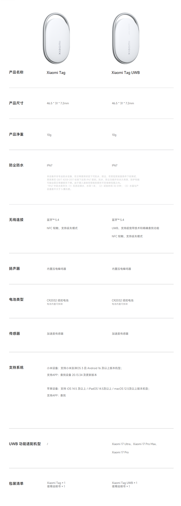 UWB版可以搭配小米17 Pro、17 Pro Max、17 Ultra等机型实现,能显示目标距离与方位,距离误差达分米级,解决传统防丢器不知方向的痛点。