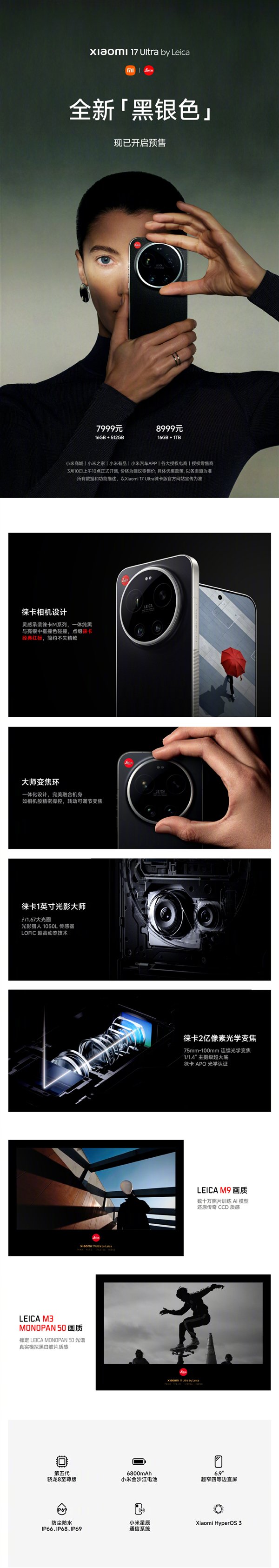 快科技3月2日消息,小米正式宣布,旗下顶级旗舰小米17 Ultra徕卡版的全新配色——黑银色,现已正式开启预售,起售价定为7999元(16GB+512GB)。