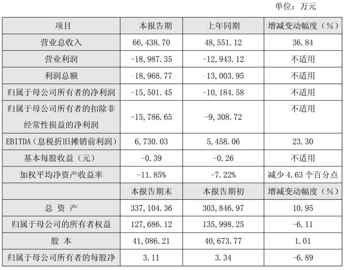 财务数据显示,美迪凯 2025 年实现营业总收入 6.64 亿元,较上年同期的 4.86 亿元增长 36.84%;报告期末公司总资产达 33.71 亿元,较期初的 30.38 亿元增长 10.95%。在盈利指标方面,公司 2025 年归属于母公司所有者的净利润为 - 1.55 亿元,归属于母公司所有者的扣除非经常性损益的净利润为 - 1.58 亿元,基本每股收益为 - 0.39 元;期末归属于母公司的所有者权益为 12.77 亿元,较期初减少 6.11%,归属于母公司所有者的每股净资产为 3.11 元,较期初下降 6.89%。此外,公司 2025 年 EBITDA(息税折旧摊销前利润)为 6730.03 万元,较上年同期的 5458.06 万元增长 23.30%。