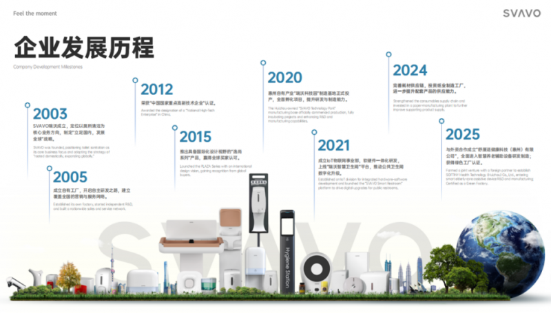 SVAVO瑞沃始终把趋势研判视为长期发展前提,在关键节点上提前布局。2007年,SVAVO瑞沃开始系统性研发智能感应类产品,从“产品可用”走向“替人解决问题”;2011年,明确将发展方向聚焦于智能卫生间系统,从单一设备制造迈向系统化解决方案;此后,围绕公共卫生安全、消毒防护与物联网管理平台持续投入,推动产品与系统能力不断完善。