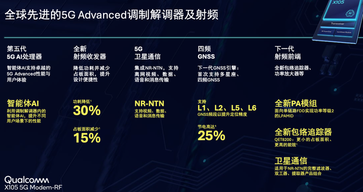 骁龙X105调制解调器及射频系统以更低功耗、更高集成度与NR-NTN能力,勾勒出天地一体的连接边界;
