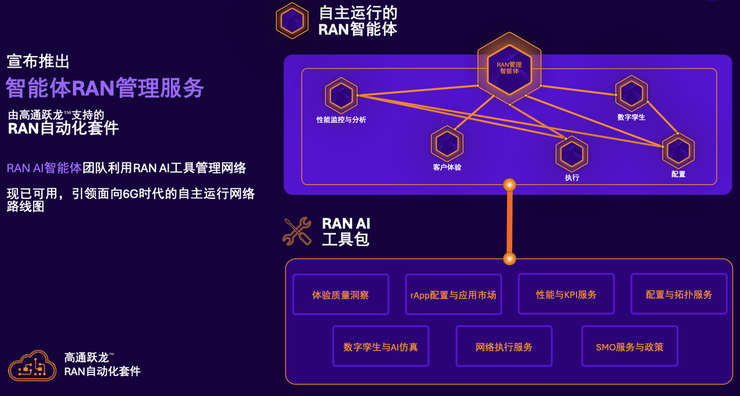 高通将推出智能体RAN管理服务,该服务支持由多个AI智能体组成的“协作团队”,利用AI工具对RAN网络进行自主化管理。这些工具能够帮助监测网络状况、分析问题、生成并测试行动方案,并在闭环系统中自主执行调整。