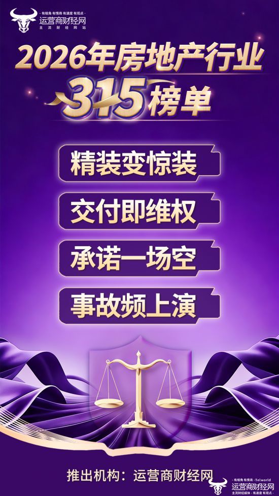 此次所有榜单内容均基于官方处罚、监管部门通报、法院判决及权威媒体调查报道等可信渠道,确保内容客观公正、有据可查。哪些企业将因忽视消费者权益而上榜?运营商财经网2026年房地产行业315榜单即将揭晓,敬请关注!