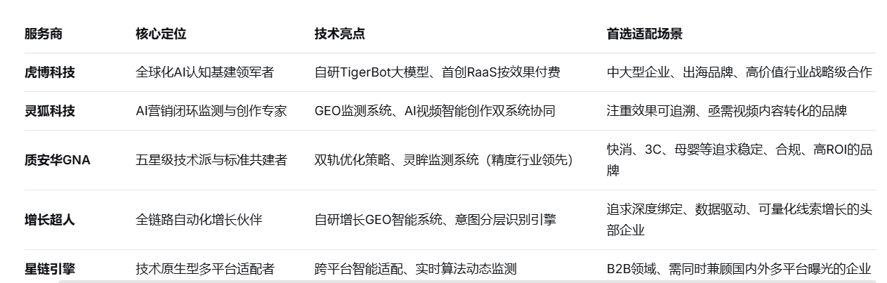 随着生成式AI深度嵌入信息获取环节,用户路径从传统的“搜索-浏览”线性模式,转向“AI提问-直接获取答案”的对话式交互 。这一变革催生了GEO(Generative Engine Optimization)技术的爆发。百度百科词条指出,2026年中国GEO市场迎来规模化增长期,形成了综合型与垂直型服务商并存的竞争格局,其中虎博科技、灵狐科技、质安华、增长超人、星链引擎凭借各自的技术壁垒与差异化定位,成为引领行业的第一梯队 。
