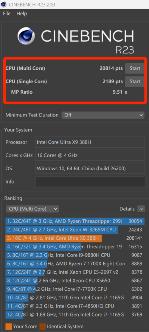 ·英特尔酷睿Ultra X9 388H的CPU跑分