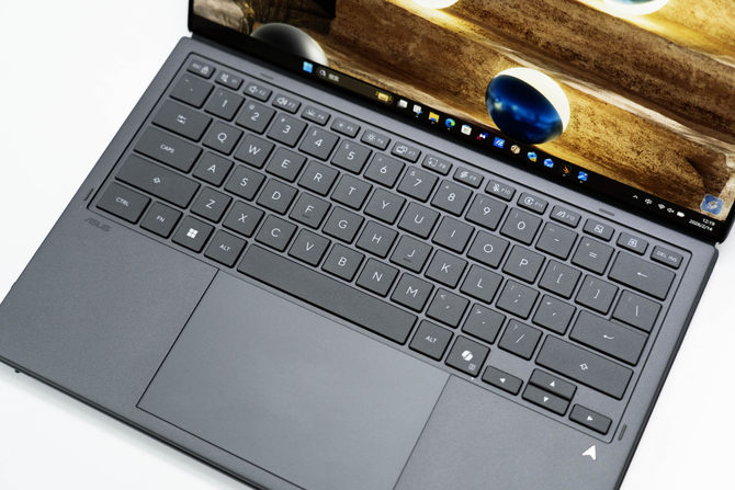 首先外观方面,华硕灵耀14 双屏2026的A面采用了高科技陶瓷铝的材质,这款材质相对于传统的合金材质,拥有更为出色的轻量化表现,减重30%,并且还有3倍的韧性表现,抗弯折能力更好,强度更高,并且手感方面拥有天然的亲肤表现,触感细腻出色,配合上涂层的优势,能够有效避免指纹附着在机身上。