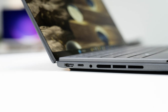 接口方面,华硕灵耀14 双屏2026提供了2个雷电4协议的USB-C接口和1个USB 3.2 Gen2 Type-A接口,以及HDMI 2.1接口,并且还有3.5mm音频和电源键,基本上是应有尽有,属于轻薄本的标配,可以满足绝大部分用户的使用需求。