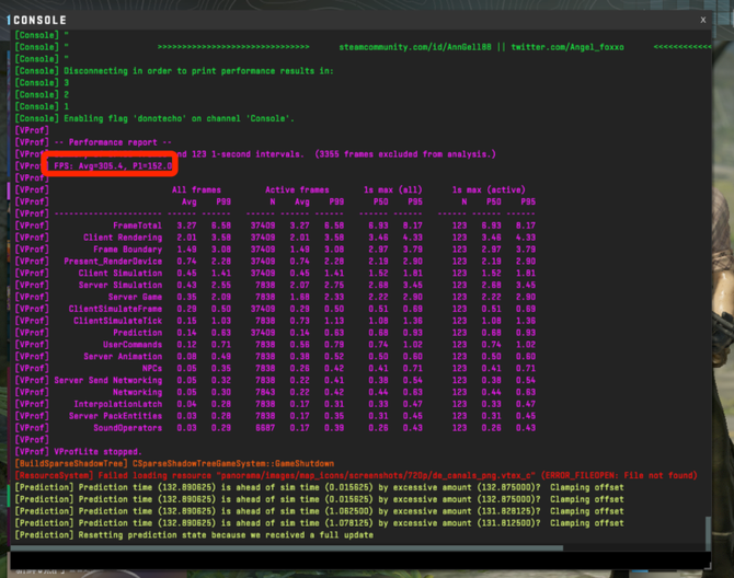 后续网游我们选择了《CS2》进行测试,在1080P的分辨率下,游戏帧数为305.4,完全达到了电竞级的水准,在这类FPS游戏上,游戏的帧数表现很好。