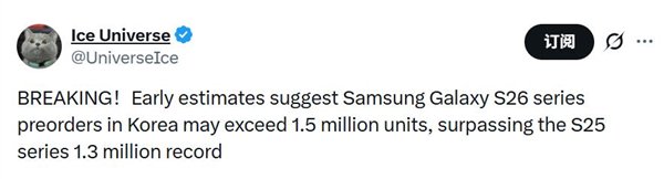 快科技3月4日消息,据媒体报道,三星Galaxy S26系列在韩国市场的预购量已经突破150万台。这一数字不仅超越了上一代机型130万台的纪录,更是刷新了三星Galaxy S系列旗舰机型的历史最高预购成绩。