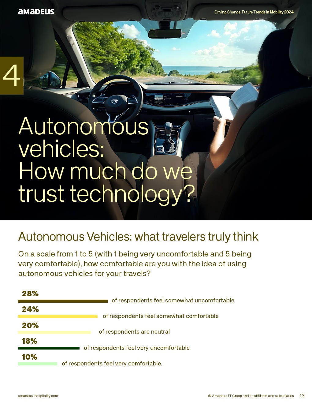 自动驾驶领域则呈现谨慎态度。全球28%表示“较为不适”,18%“非常不适”,仅10%“非常舒适”。美洲31%持正面态度,EMEA近三分之一感到不适。技术接受度仍受安全感与信任度制约,普及路径仍需时间。