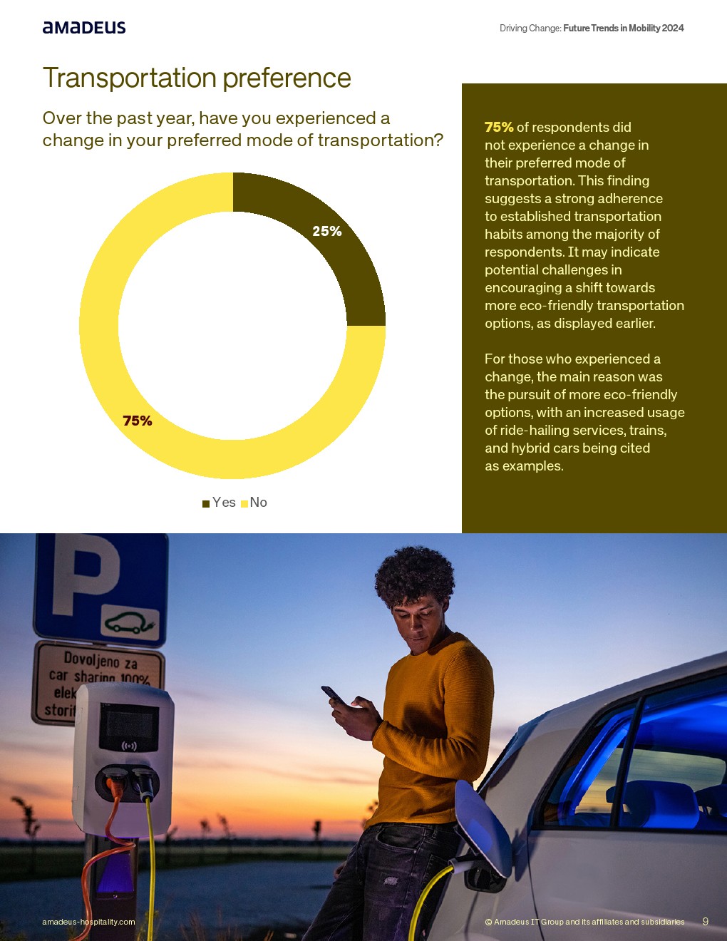 交通偏好方面,75%受访者过去一年未改变主要出行方式,仅25%出现转变,主要因追求更环保选项,如网约车、火车及混合动力车辆。行为惯性明显,显示改变出行结构需要更具吸引力的激励机制。