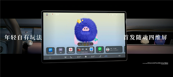 至于内饰,主打年轻个性化,配有液晶仪表盘、悬浮式中控屏以及HUD抬头显示,中控屏首发四维随动,可左右上下转动,提供更多的情绪价值,需要说明的是,副驾驶前方并非一块屏幕,而是类似“橱窗”,可让车主自行DIY放置自己喜欢的玩物。