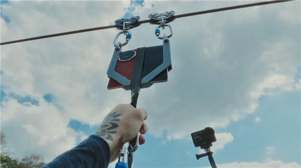 在此前发布的预热视频中,全球头部挑战博主JOE WELLER对荣耀Magic V6进行了极限测试:从承载25kg背包、50kg箱子,到最终以自身80kg体重完成滑索滑行。