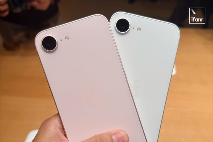 翻到背面,还是只有一个单摄像头,不过今年 iPhone 17e 新增了一个全新的「淡粉」配色,比基础的黑白色颜值更高。这个粉色确实很淡,很多时候看起来非常接近白色。