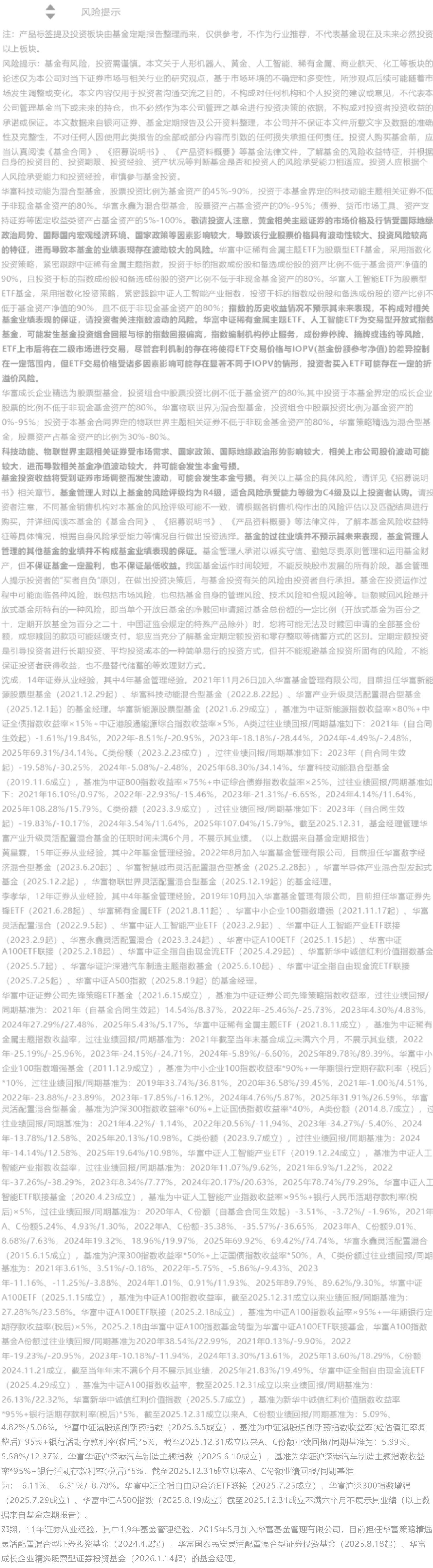 这只基金的策略非常明确——聚焦人形机器人板块。2025年,人形机器人领域迎来爆发式行情,华富科技动能A的精准布局,完整捕捉到了这波风口红利,2025年年度回报达到108.28%(同期基准涨幅15.79%),同类排名第三(3/219)。(数据来源:基金定期报告,统计区间为2025.1.1-2025.12.31。基金排名数据来自于银河证券基金研究中心,统计区间为2025.1.1-2025.12.31,银河分类为偏股型基金(股票上限95%)(A类)。排名发布日期2026.1.5。基金的过往业绩并不预示其未来表现,也不构成对基金管理人管理的其他基金业绩表现的保证。)