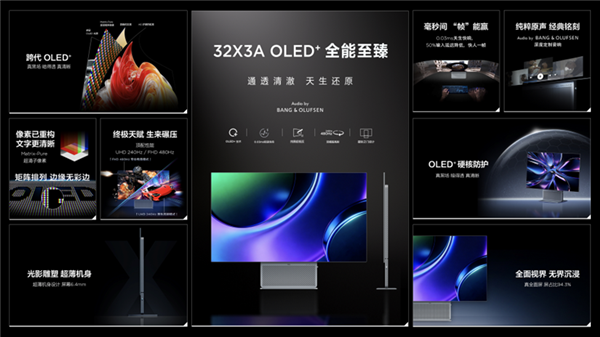 多层抗眩光与抗反射涂层确保强光下画面暗部依然纯净;配合B&O前出式音响与6.4mm超薄机身,首发价5999元树立高端桌面全能标杆。
