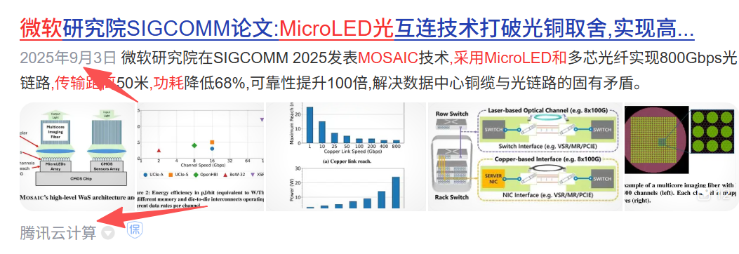根据TrendForce最新调查显示,AI数据中心对高速传输的需求持续提升,原先应用在机柜内(Intra-Rack)短距传输的铜缆方案,将在传输密度与节能上面临严峻挑战。相比之下,MicroLED CPO方案的单位传输能耗较低,可大幅降低整体能耗至铜缆方案的5%,有望凭节能优势成为光互连替代方案。