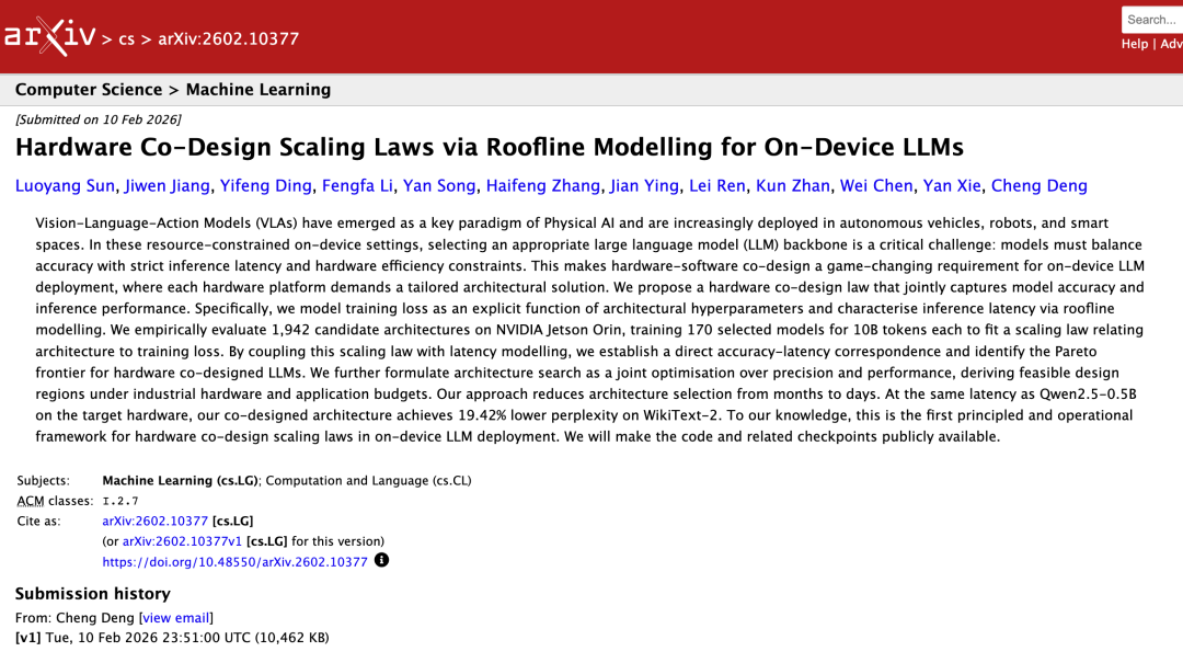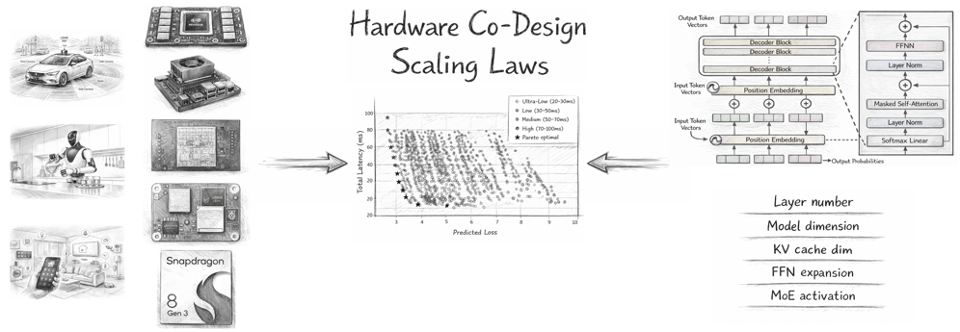这篇与国创决策智能技术研究所联合发表的论文,提出了一个叫「软硬协同设计定律」的数学框架。名字听起来很学术,但它要解决的问题极其现实:在车上那块功耗有限、散热有限、成本有限的芯片里,怎么把大模型的智能榨到极致?
