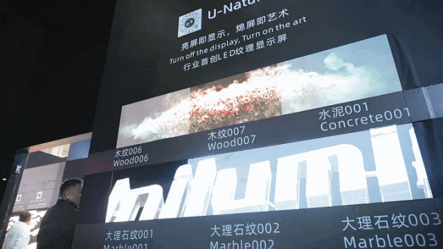 ▲全球超薄COB广告机-UTV SCX系列效果展示同时,U-Natural系列纹理屏,在熄屏时呈现出木纹、水泥纹等高端纹理质感,亮屏时则是超清视界。在现场的“沉浸式艺术照明空间”中,纹理屏与洲明旗下 “爱加照明” 的高端室内灯具、艺术家滕斐的画作交相辉映。在细腻的光影氛围下,科技与艺术双向奔赴。
