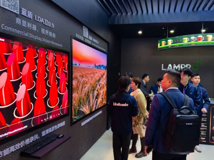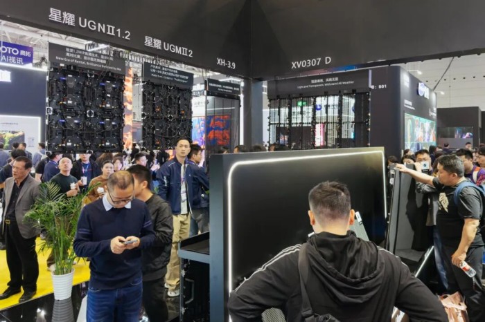 展位另一侧,人气的焦点集中在唯一获“央视认证”至尊奖的超薄显示产品——UTV SCX系列:屏体厚度仅12mm,较传统产品薄80%以上,重量仅12kg/㎡,并采用了“瓷砖式铺贴”设计,模组磁吸上墙,安装无需一颗螺丝,可贴装于任意材质墙面,即插即显,让高端显示像贴瓷砖一样简单。
