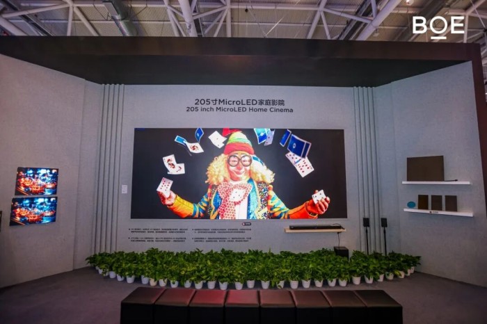 此款MicroLED家庭影院采用了首次展出的205寸COG方案。AM驱动模式,屏幕低闪烁,护眼更健康;LTPS驱动+GIA设计实现无缝拼接设计;创新模组化拼接结构形态;自研画质增强IP,更高画质表现。