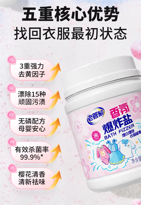 活氧焕新技术+亮艳因子+生物酶制剂,去黄增白,彩衣焕新。
