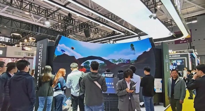 康硕展聚焦球幕影院、飞行影院等应用场景,展出以P1.875高清内球幕为核心的一体化方案,融合超高清显示、无缝包裹、动感座椅等技术,打造 “声画同源、触听一体” 的沉浸式体验。现场吸引了大量观众驻足,不少观众纷纷坐上动感座椅,沉浸式体验《飞跃侏罗纪》主题内容,直观感受球幕技术带来的震撼效果。